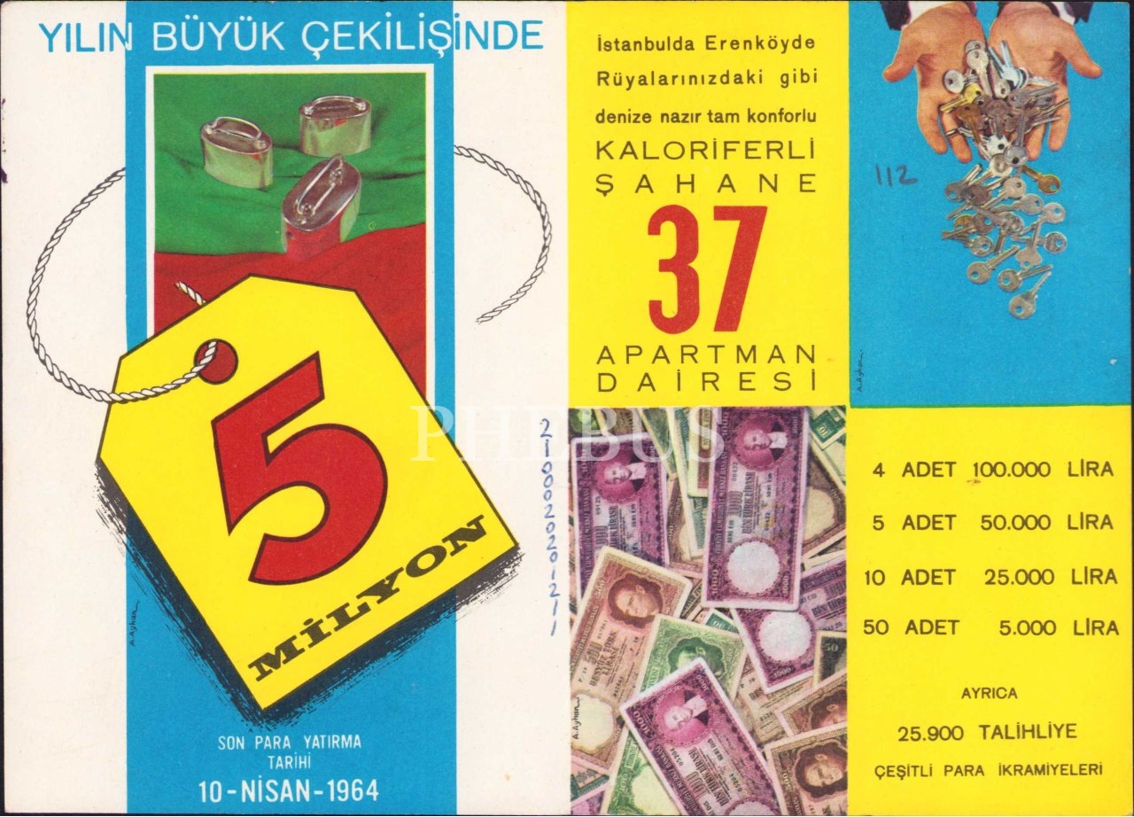 T. C. Ziraat Bankası 10 Nisan 1964 tarihli çekiliş duyurusu, 22x18 cm