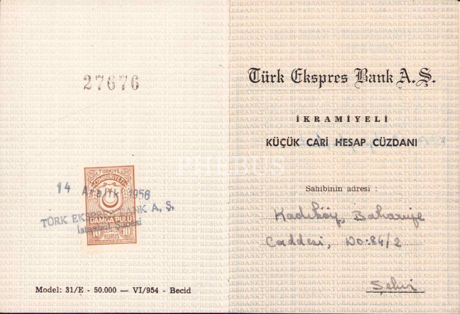 Türk Ekspres Bank A.Ş. İkramiyeli Küçük Cari Hesap Cüzdanı, 12 sayfa, 9x12 cm