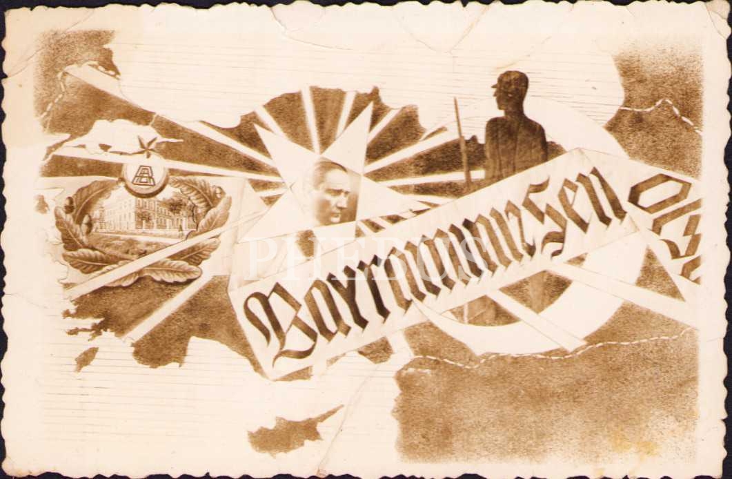 Atatürk görselli bayram tebrik kartı, 9x6 cm, üst tarafı haliyle