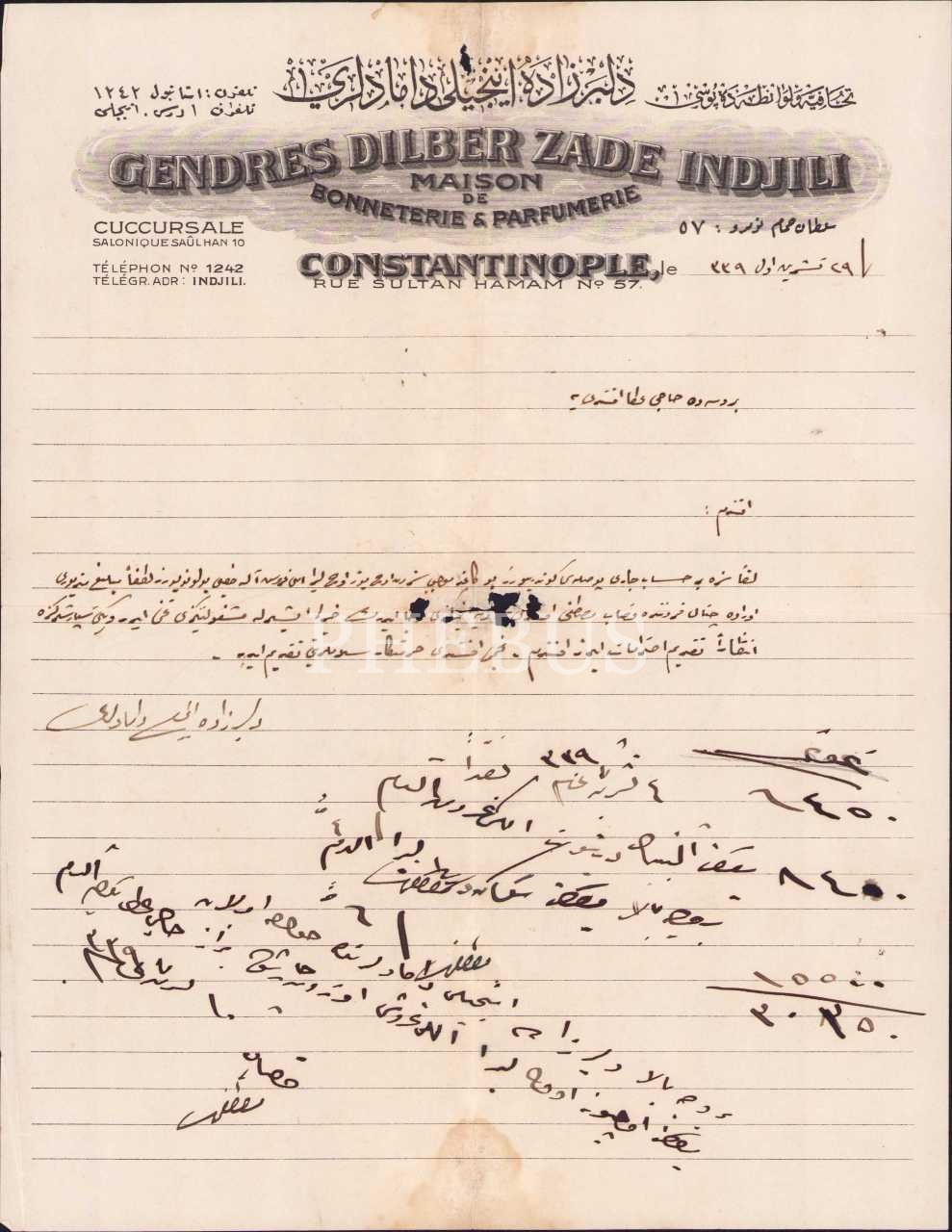 Osmanlıca Fransızca Dilber Zade İncili Damatları anetli Osmanlıca yazılı doküman, 1339 tarihli, haliyle, 22x29 cm