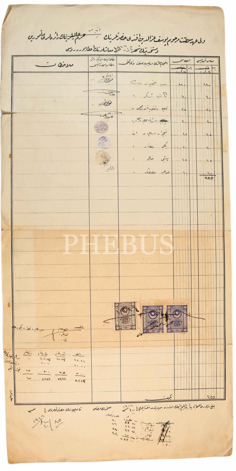 Merhum Şehzade Yusuf İzzettin Efendi Hazretlerinin daireleri memur maaş bordrosu, 1926 tarihli, 25x70 cm