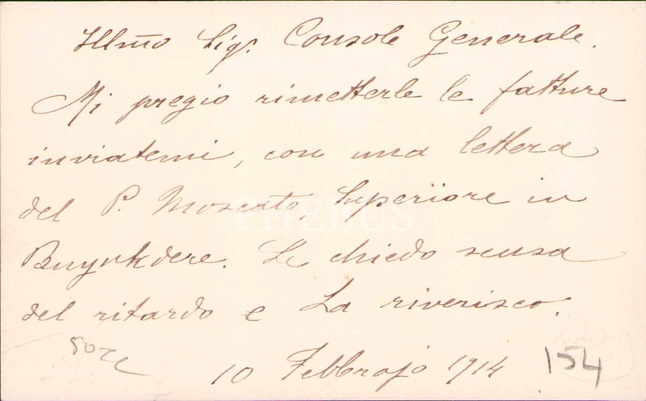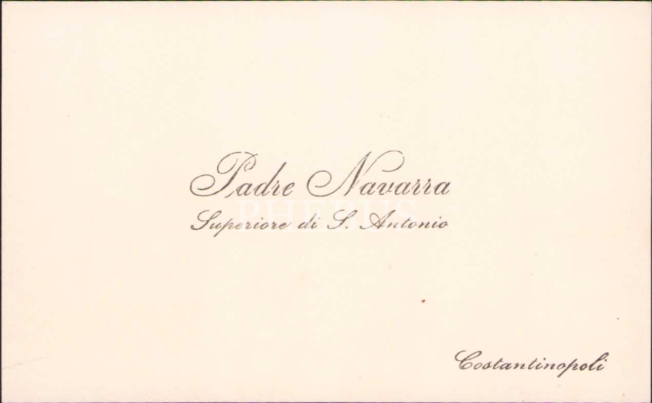 Padie Navarra - Constantinopoli yazılı kartvizit, arkası yazılı, 1914, 11x6 cm