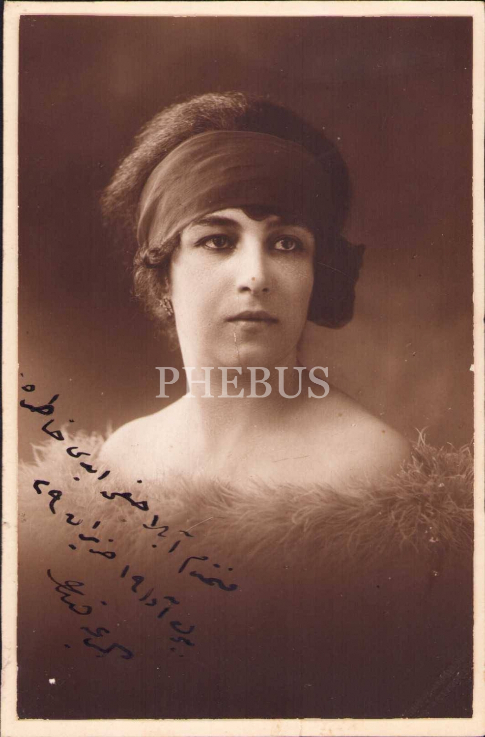 Photo Sebah & Joaillier soğuk damgalı, levanten kadın tip, Osmanlıca ithaflı, 8x12 cm