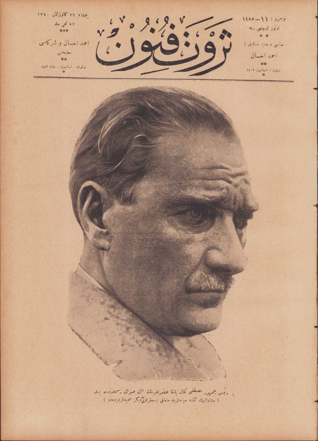 Serveti Fünun, 35.sene, Ahmet İhsan ve Şirketi Matbaası, 1340, Atatürk kapaklı, Osmanlıca, 22 sayfa, 23x33cm