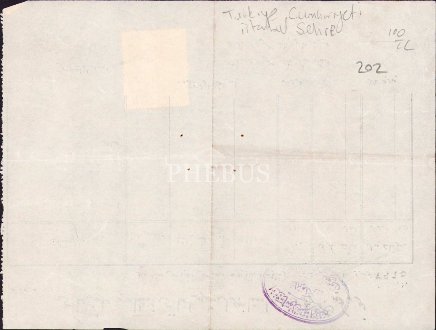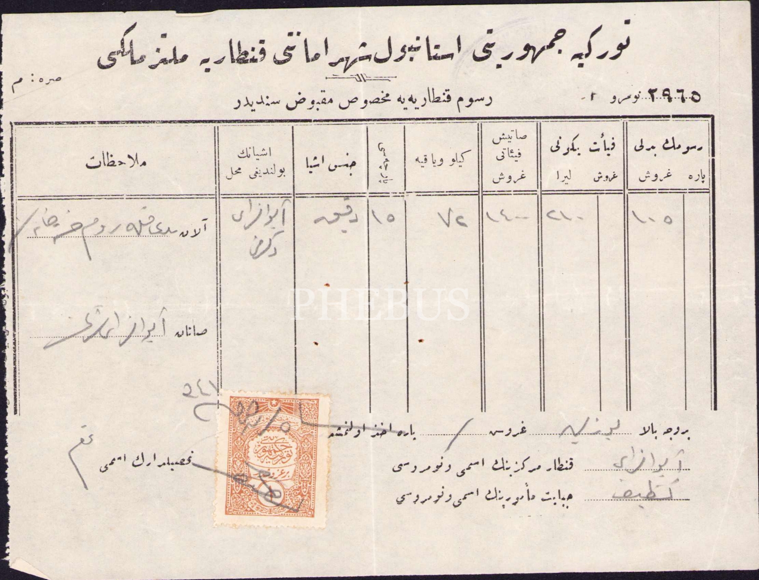 Osmanlıca Türkiye Cumhuriyeti İstanbul Şehremaneti Kantariye makbuz senedi, 1341 tarihli, 17x11 cm