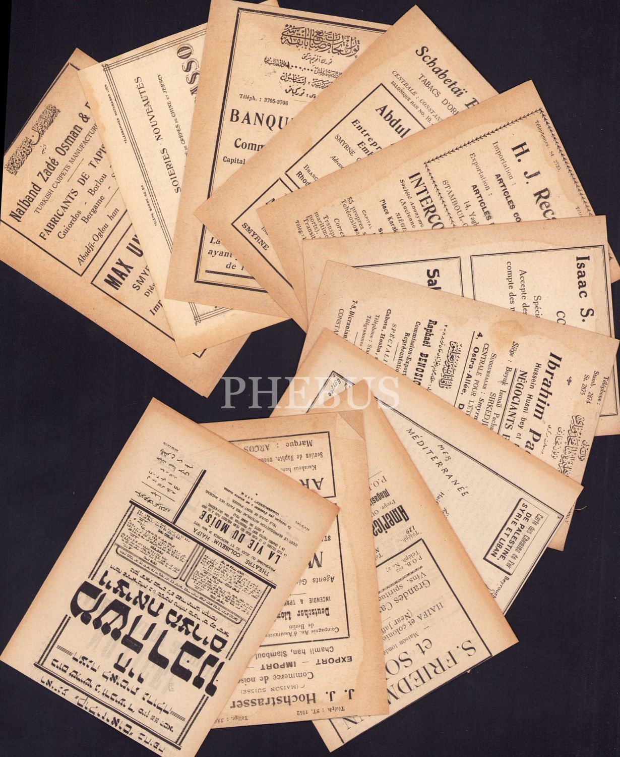 Osmanlı dönemi müslim ve gayrimüslim işletmelere ait reklam kartları, 11 adet, 10x14 cm