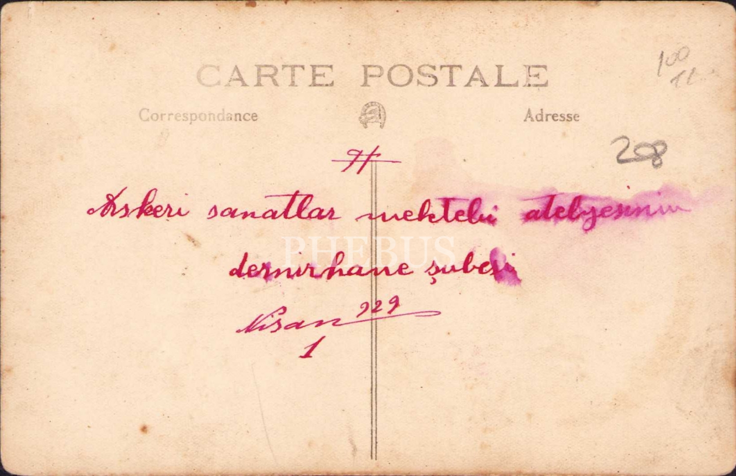 Arkası ''Askeri sanatlar mektebi atelyesinin demirhane şubesi - Nisan 1929'' yazılı fotoğraf