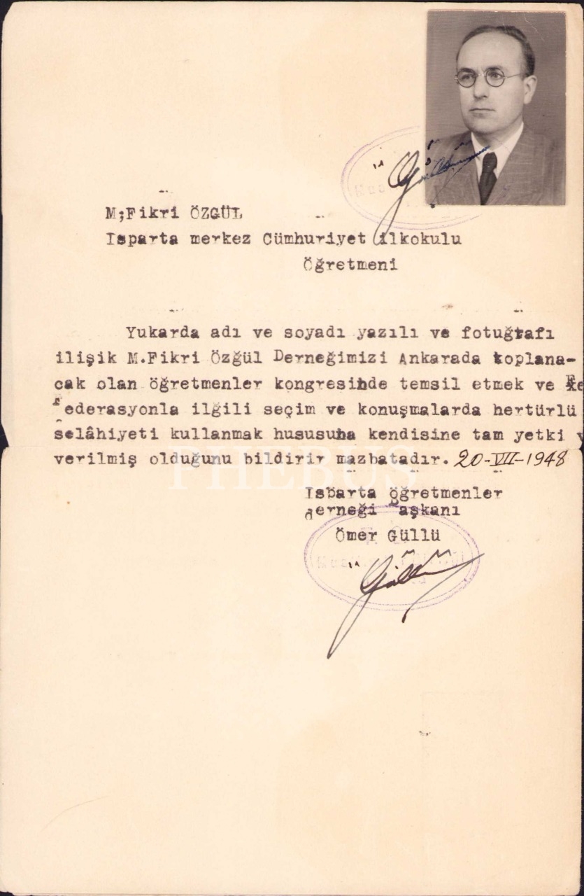 Isparta Öğretmenler Derneği mazbata, 14x22 cm
