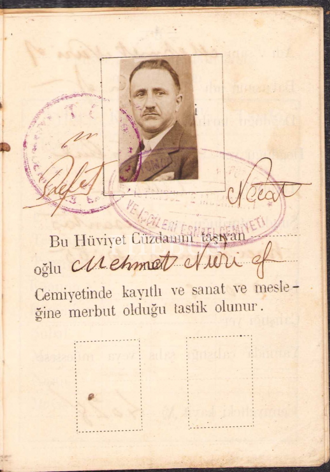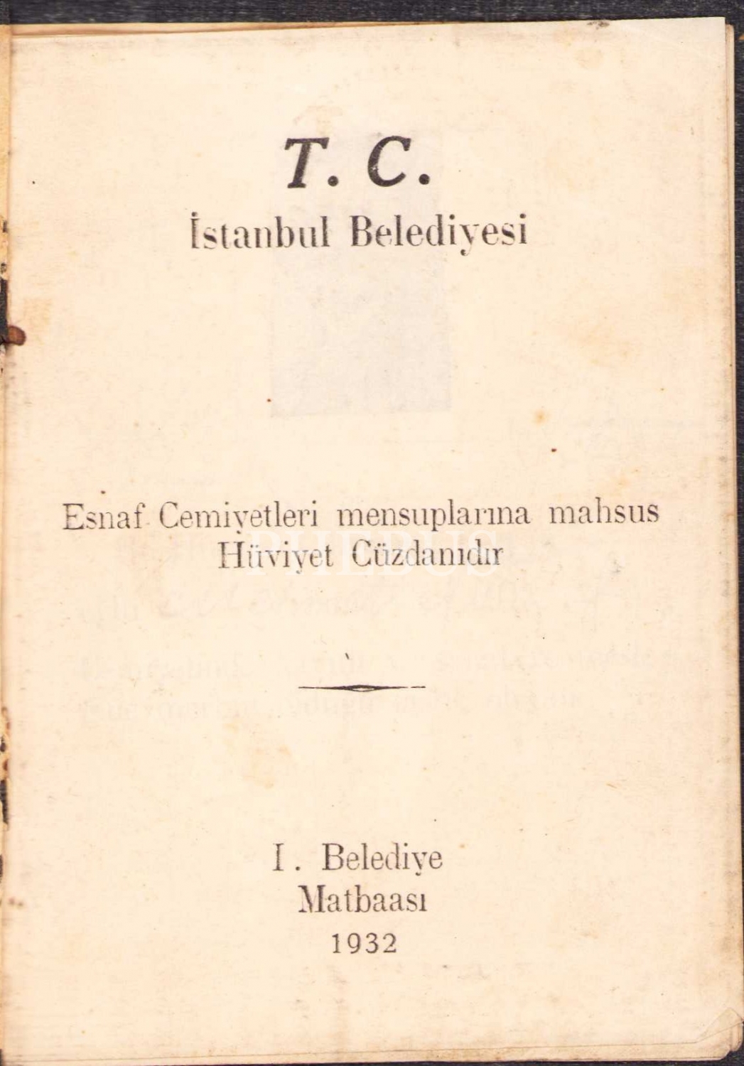 T. C. İstanbul Belediye - Esnaf Cemiyetleri mensuplarına mahsus Hüviyet Cüzdanı, I. Belediye Matbaası 1932, 16 sayfa, 10x14 cm