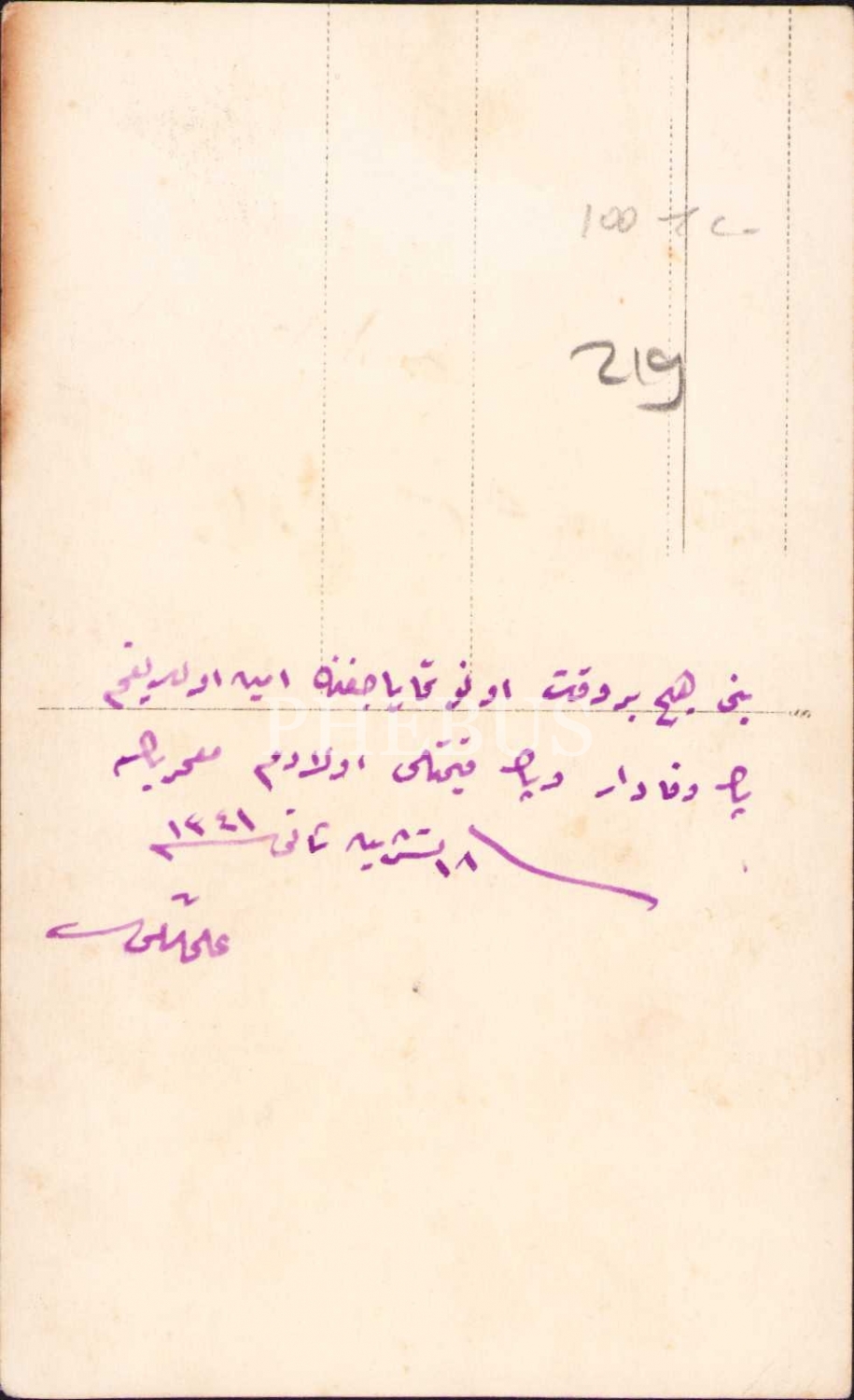 Erken dönem beyefendi, Osmanlıca ithaflı 1341 tarihli, 7x12 cm