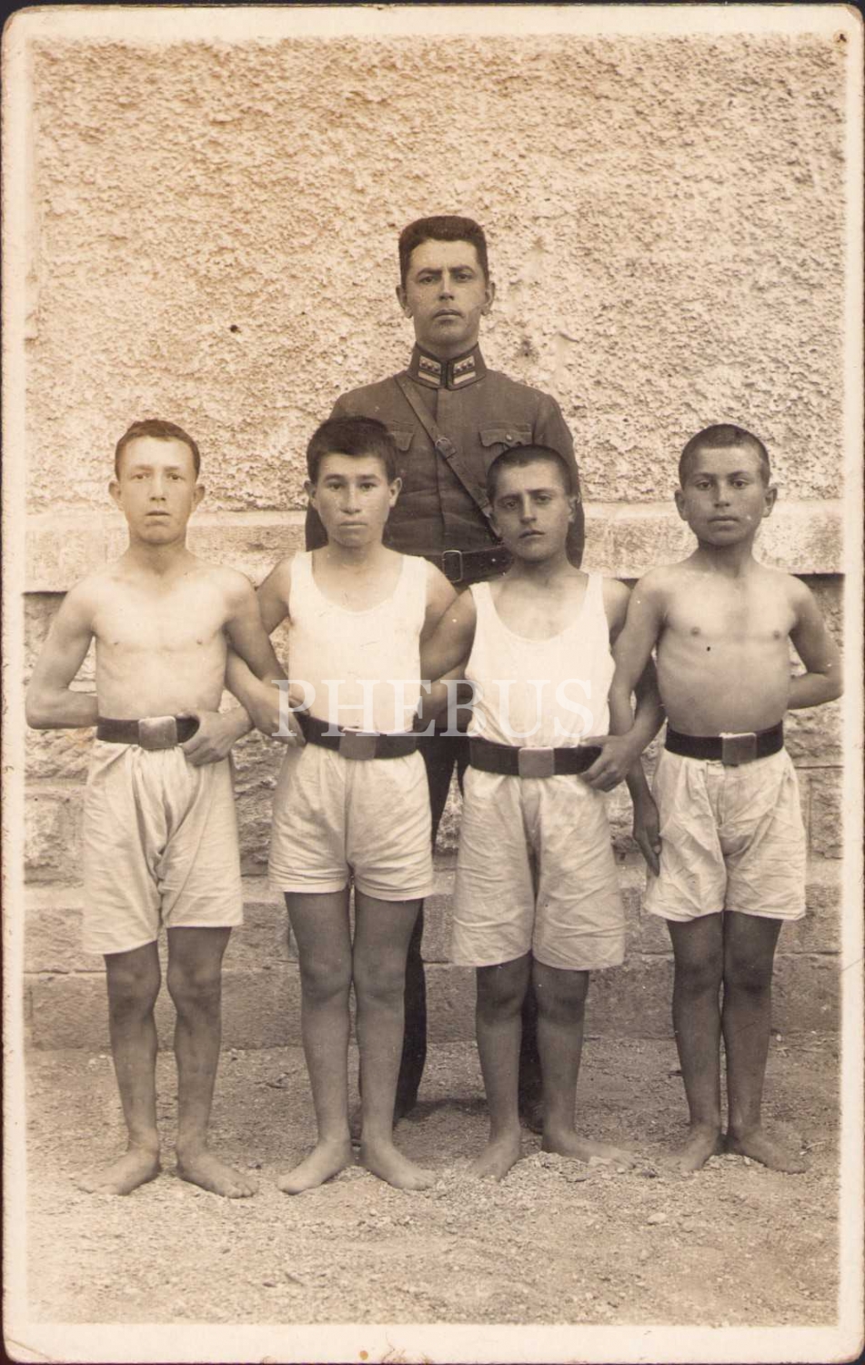 Üniformalı subay ve talim kıyafetleri içinde çocuklar