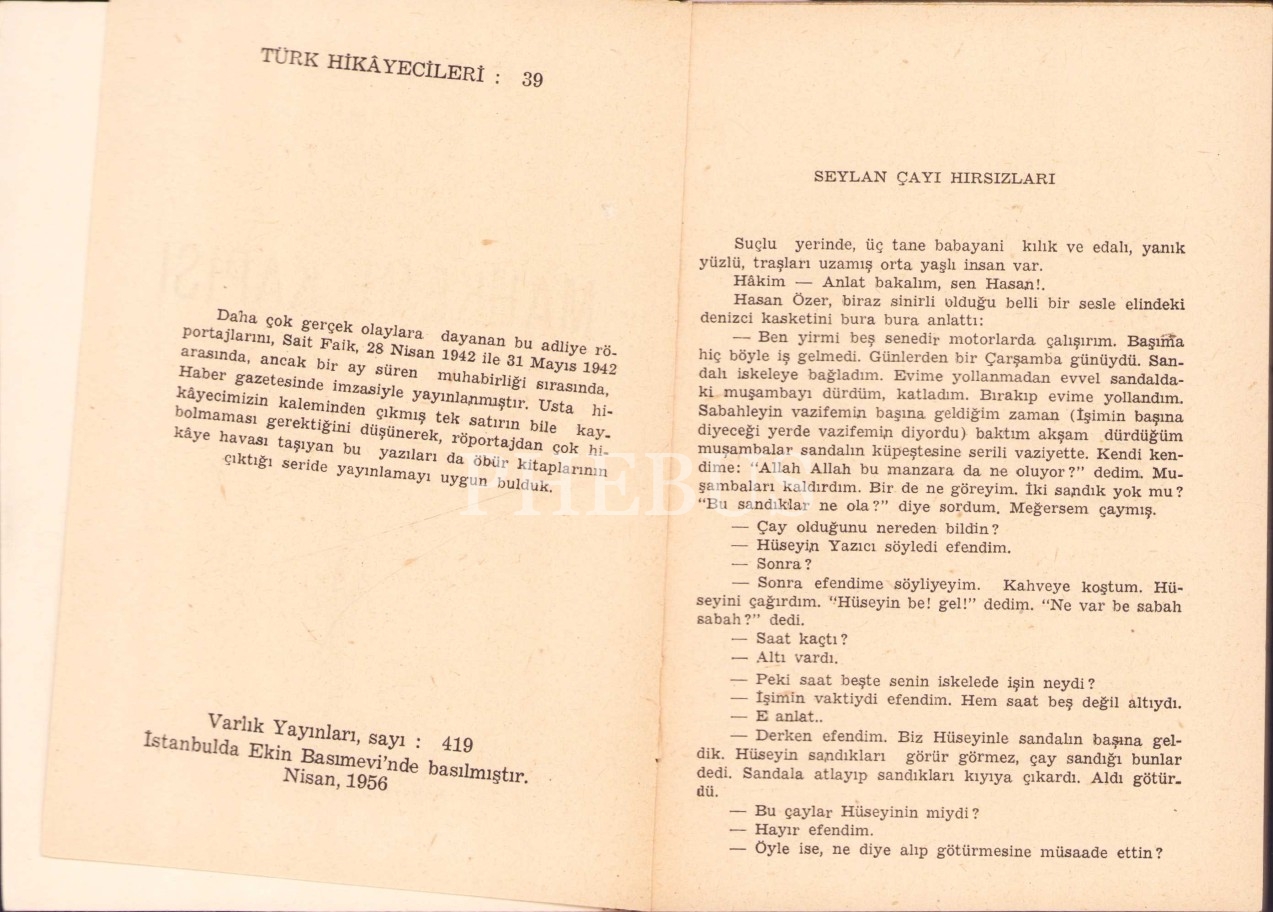 Sait Faik'in Mahkeme Röportajları: Mahkeme Kapısı, İlk Baskı, Varlık Yayınları, 1956, 90 sayfa, 11x18 cm