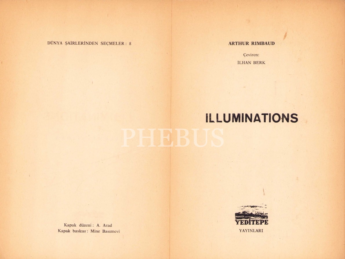 Tercüme Eden İlhan Berk'ten imzalı ve ithaflı Arthur Rimbaud'un Şiirleri: Illuminations, İlk Baskı, Yeditepe Yayınları, 1971, 59 sayfa, 15x21 cm