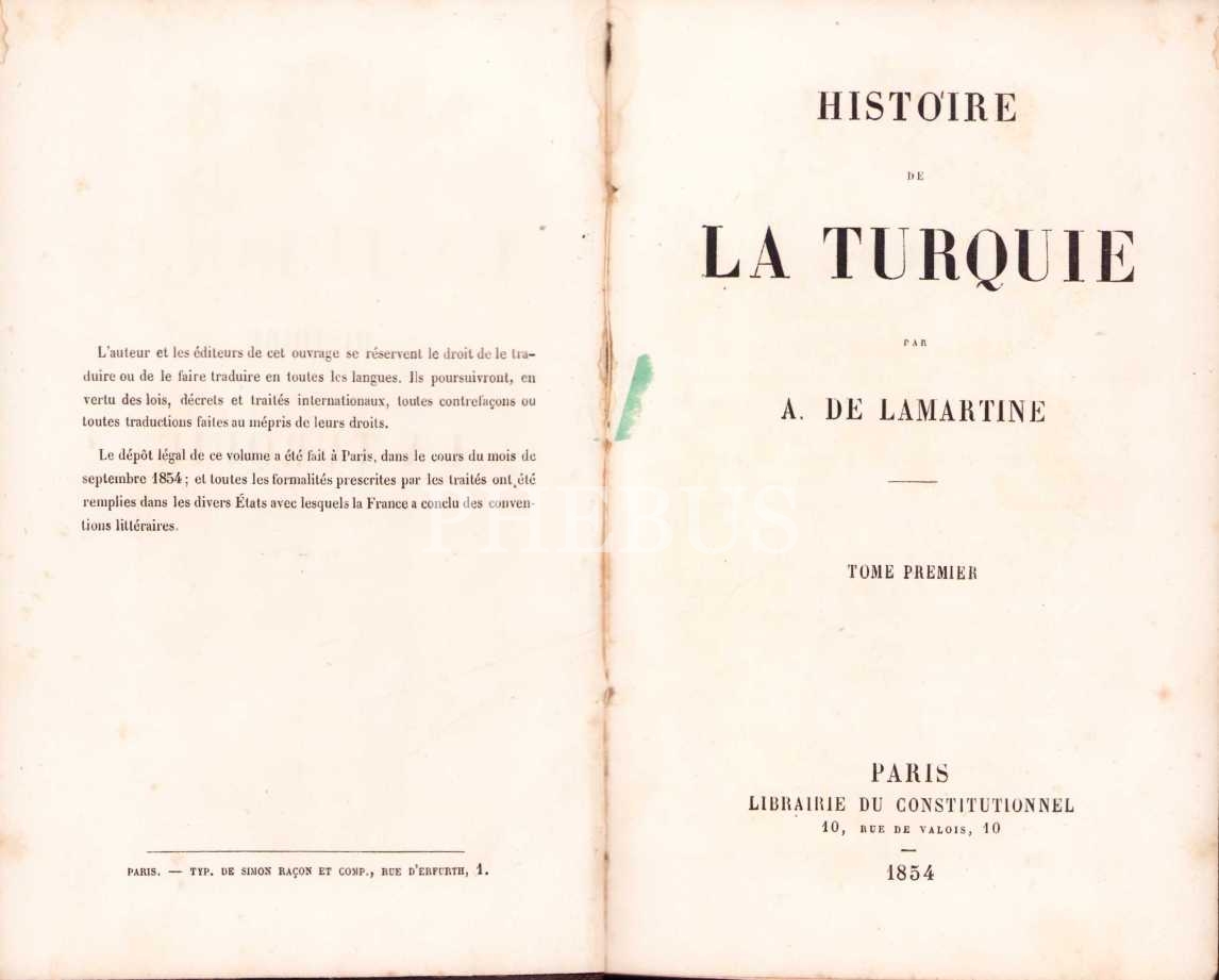 On Dokuzuncu asır Fransız şair, diplomat, araştırmacı, seyahat yazarı olan Lamartine'in eseri, Osmanlı İmparatorluğu'nun 1299- 1839 yılları arasındaki dönemini kapsamaktadır.
