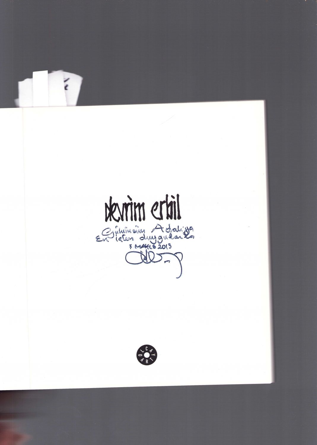 İthaf, "Gülümsün Adalı'ya en içten duygularla, Devrim Erbil" şeklindedir. Devrim Erbil 1937’de Uşak’ta doğdu. İstanbul Devlet Güzel Sanatlar Akademisi (şimdiki adıyla Mimar Sinan Güzel Sanatlar Üniversitesi) Resim Bölümü’nde öğrenim gördü, Halil Dikmen ve Bedri Rahmi Eyüboğlu’nun öğrencisi oldu. Çeşitli ülkelerde araştırma ve incelemelerde bulundu. Devrim Erbil’in 1960’lı yılarda doğadan/ağaç motiflerinden yola çıkarak başlayan çizgisel karakterli resimleri, giderek bir kısmı minyatür sanatımızın kompozisyon düzenlerinden de etkilenerek kuş bakışı bir görüş açısından bakışla yüzeye indirgenmiş çizgisel ağırlıklı bir kompozisyon düzenine ulaşır.