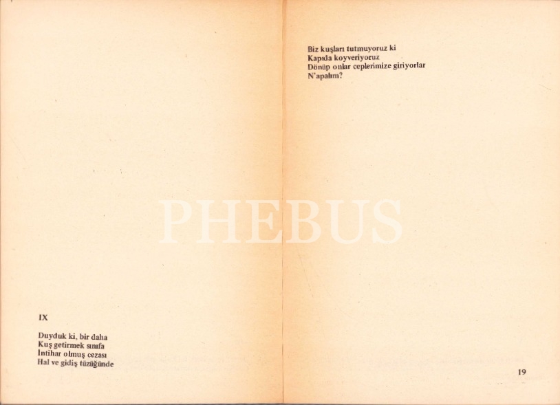 "Ne zaman elleri zambaklı padişah olursam/ Sana uzun heceli bir kent vereceğim/ Girilince kapıları yitecek ve boş/ Azizim güzel atlar da güzel şiirler gibidirler/ Öldükten sonra da tersine yarışırlar"