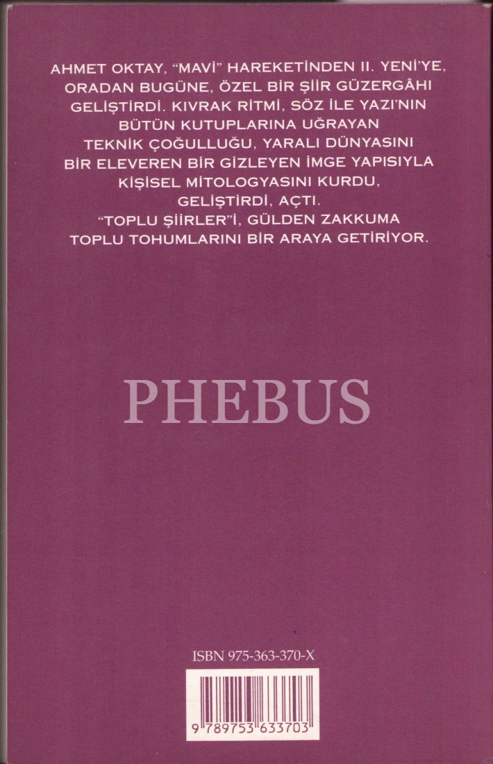 Toplu Şiirler, Ahmet Oktay'tan Turgay Gönenç'e imzalı ve ithaflı, İlk Baskı, 1995, 339 sayfa, 14x21 cm