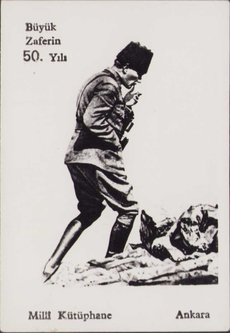 Atatürk portresi, Büyük zaferin 50. Yılı anısına Milli Kütüphane tarafından basılmış, 6,5x9cm