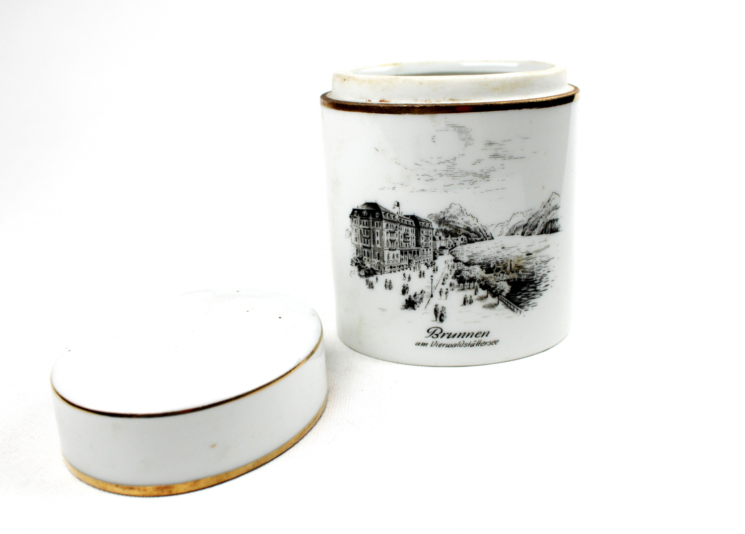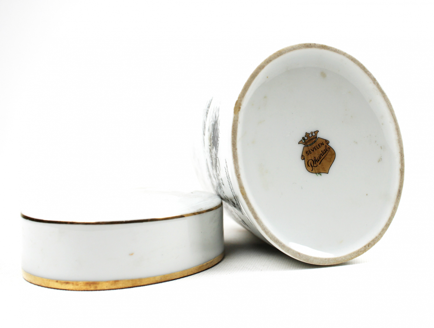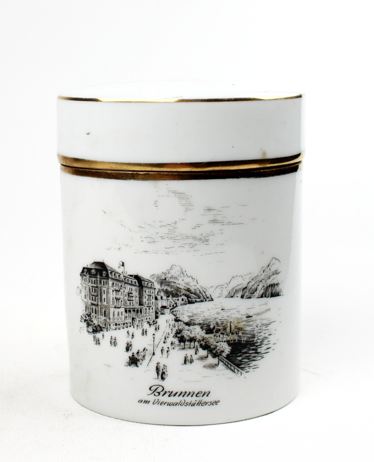 Almanya üretim, Sevelen Rheintal damgalı, Rhein nehri görselli porselen kutu, 8x10cm