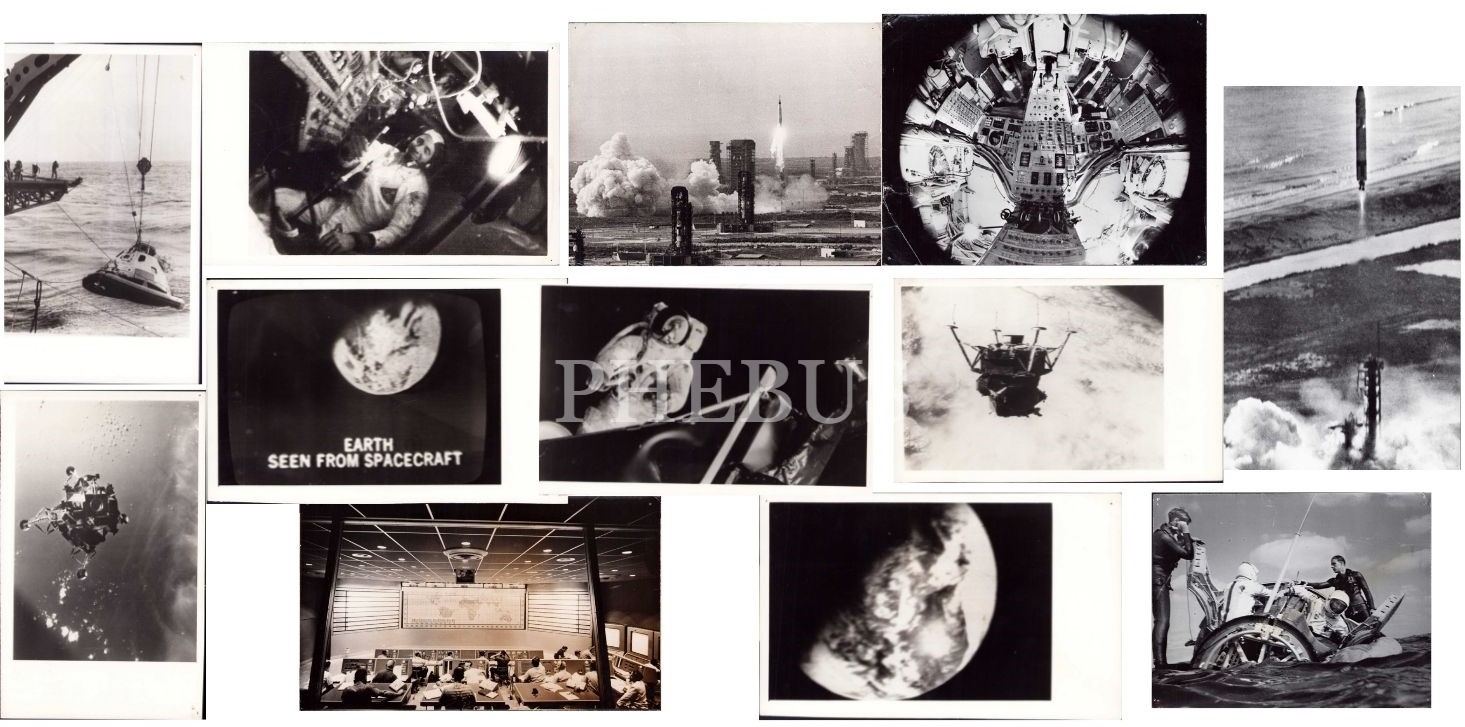 Uzay temalı fotoğraf lotu (12 adet), arkaları açıklamalı, muhtelif ebatlarda