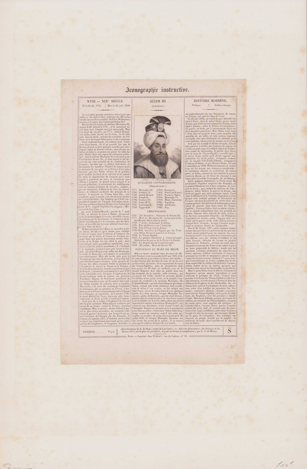 Sultan III. Selim gravür portresi, Fransız Conographie Instructive dergisinden alınmış, 19. Yüzyıl, 25,5x16,5cm