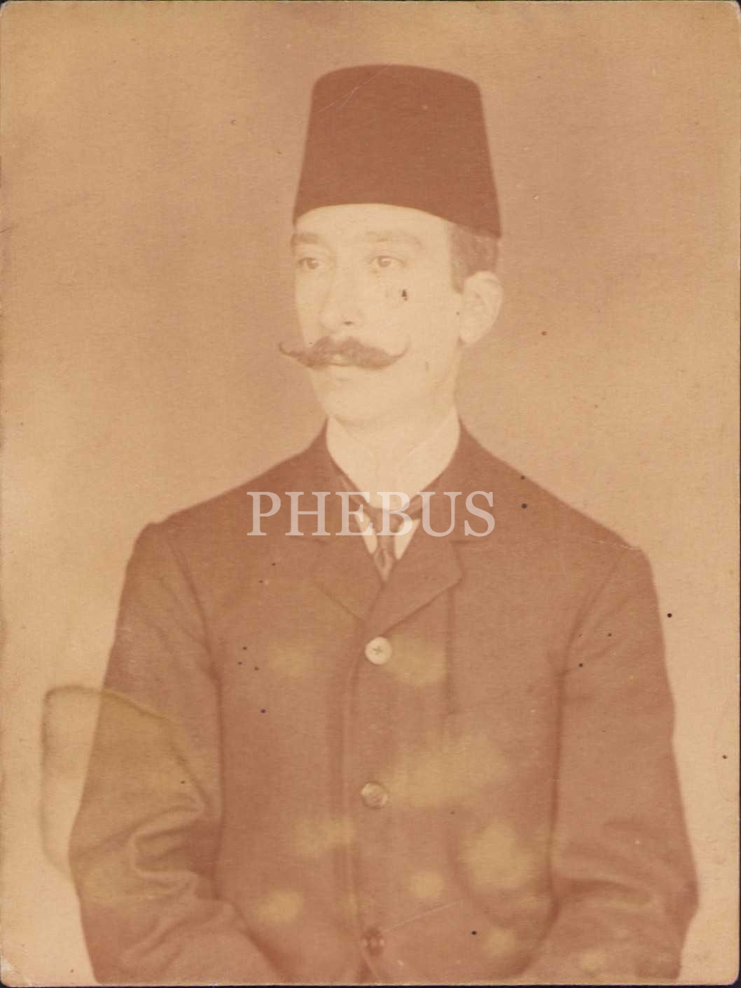 Arkası ''Büyük Dayımız Burhanettin'' yazılı Osmanlı dönemi fesli tip, 9x12 cm