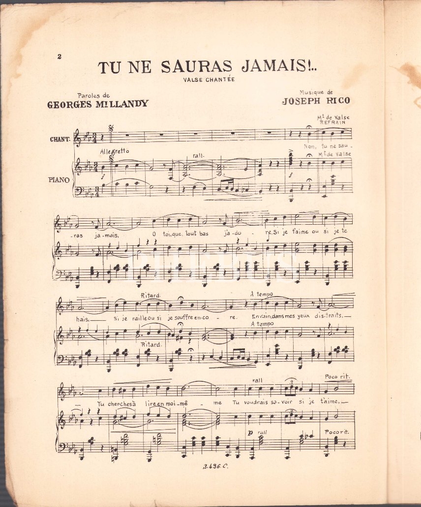 Fransızca Nota, Tu Ne Sauras Samais!, Ed. S. Christidis - Constantinople, 5 sayfa, 27x34 cm