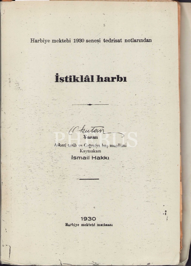 İstiklal Harbi, İsmail Hakkı, Harbiye Mektebi Matbaası, 1930, 17 kroki mevcut, 178 sayfa, 16x25 cm
