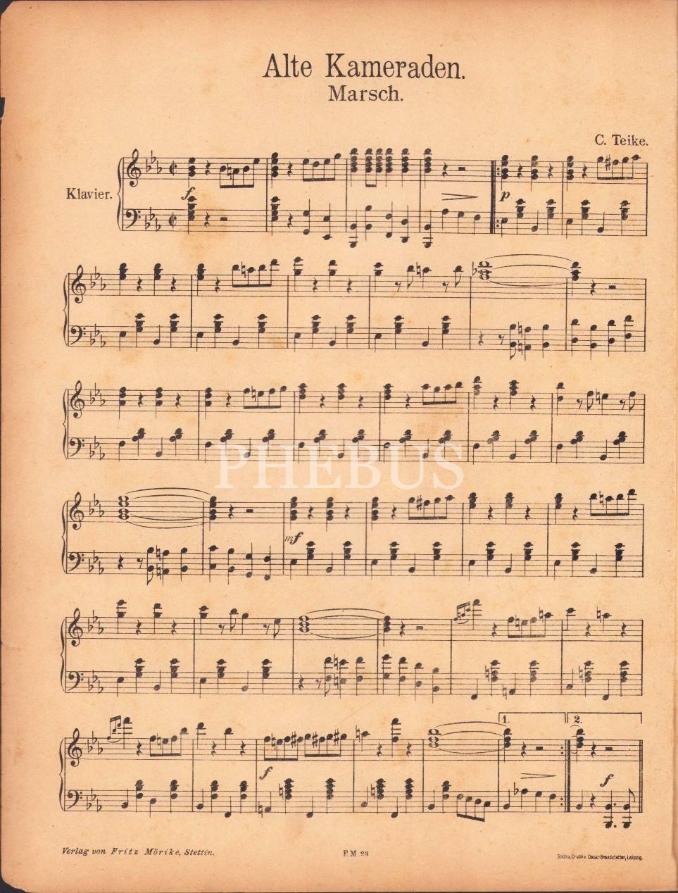 Almanca nota, Alte Kameraden Marsch [Marche], 6 sayfa, 25x32 cm