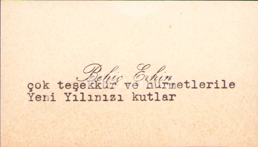 Behiç Erkin, kartvizit, yeni yıl tebrikli, 8x5 cm