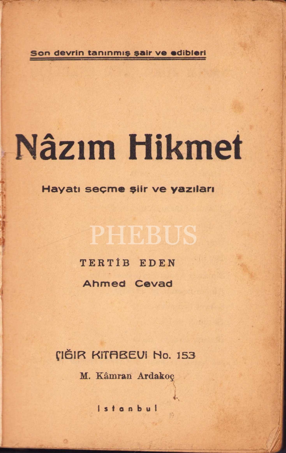 Nazım Hikmet Hayatı Seçme Şiir ve Yazıları, Düzenleyen Ahmed Cevad, İstanbul 1937, sırtı haliyle, 128 sayfa, 13x19 cm