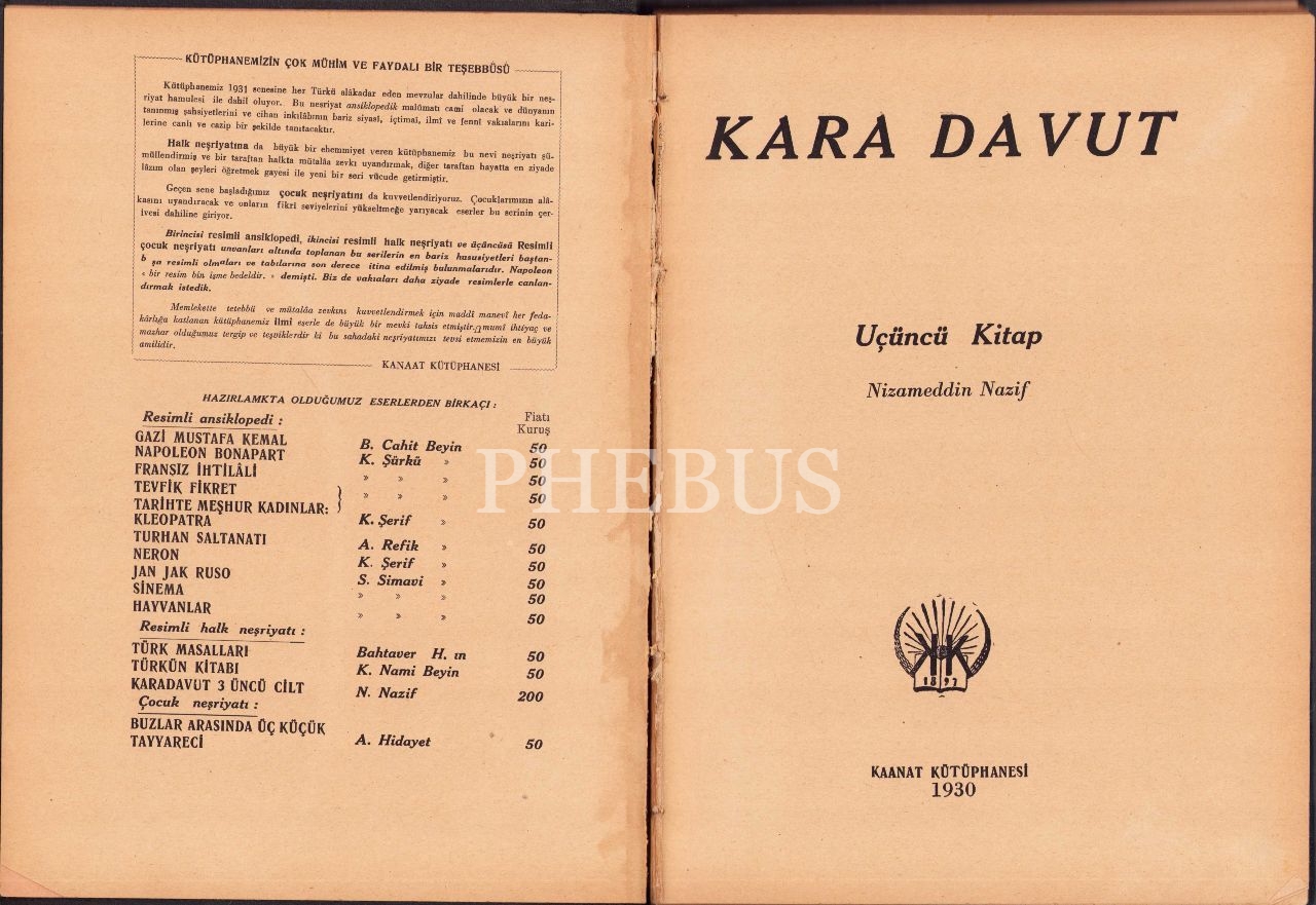 Kara Davut [Üçüncü kitap] Nizamettin Nazif, Kanaat Kütüphanesi, 1930, 148 sayfa, 19x26 cm