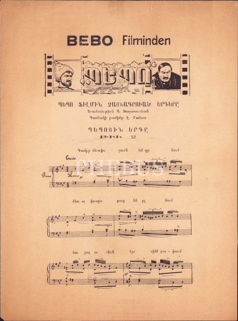 İstanbul baskı, Ermenice nota, Bebo Filminden, 4 sayfa, 24x34 cm