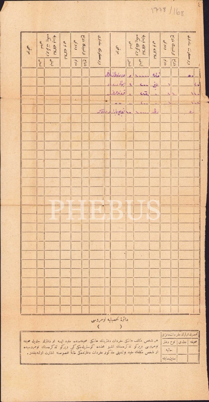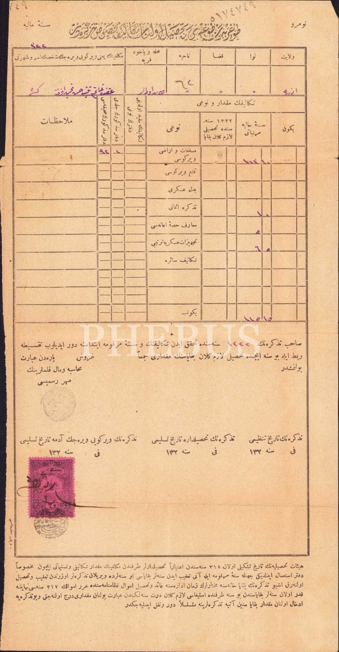 Osmanlı Doğrudan doğruya tahsil olunan mükellefe mahsus tezkere, Edirne, 1322, 16x35 cm