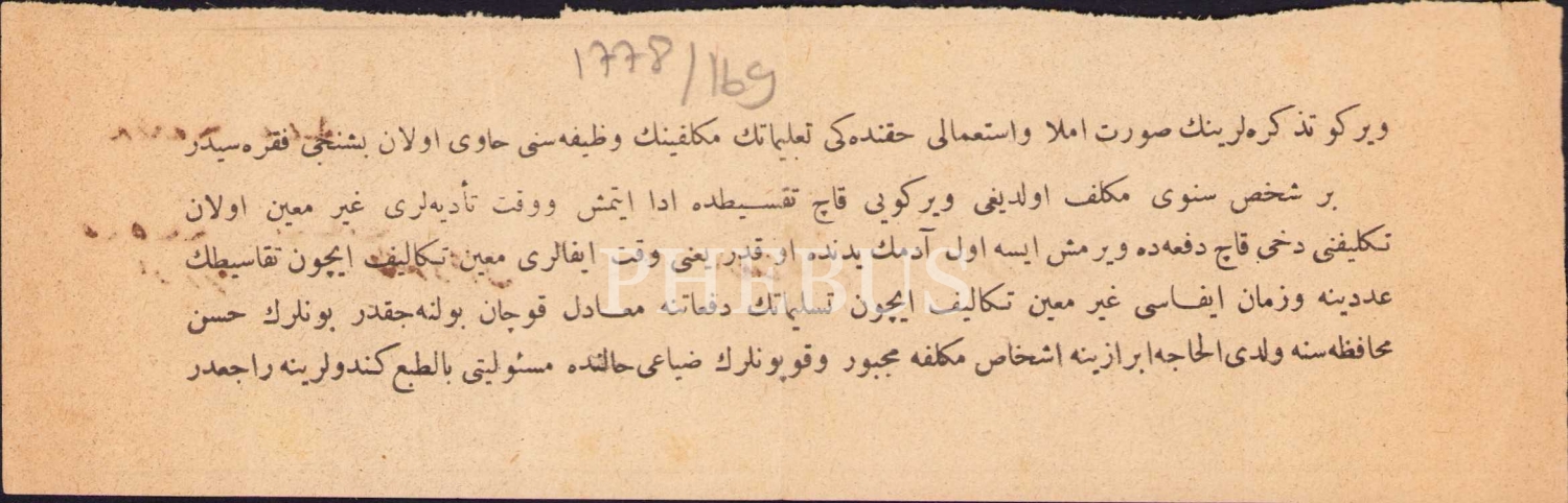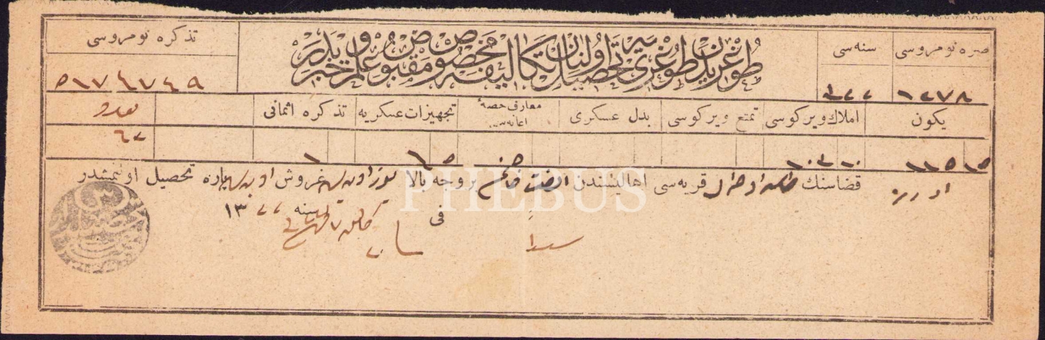 Osmanlı Doğrudan doğruya tahsil olunan mükellefe mahsus makbuz ilmuhaberi, Edirne, 1322, 16x6 cm