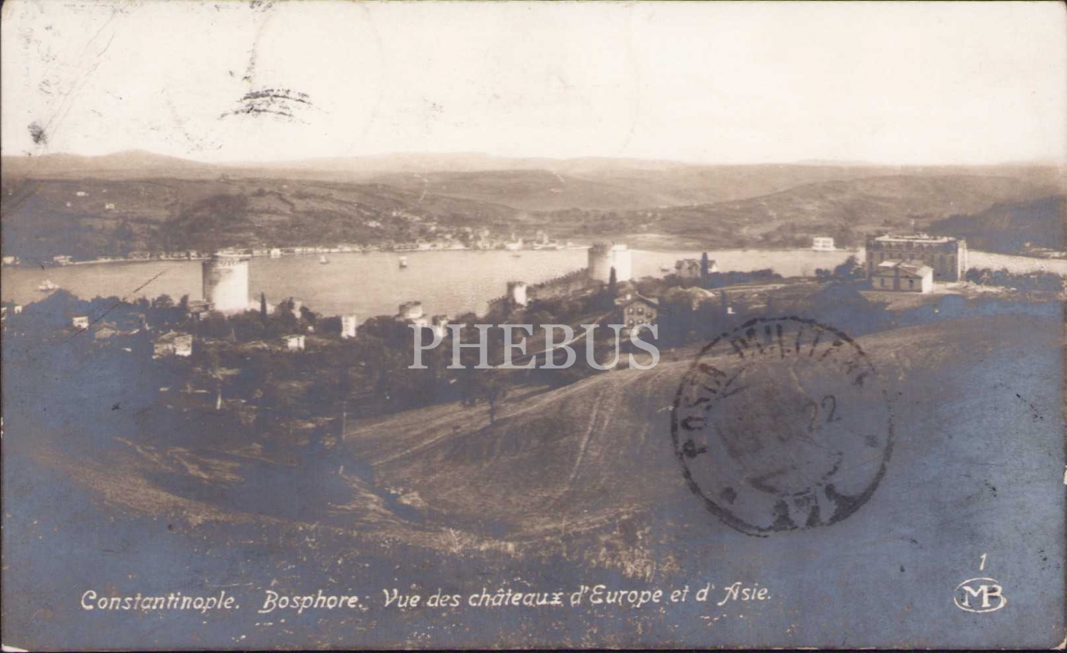 Osmanlı dönemi Rumeli Hisarı sırtlarından Asya'ya bakış, Constantinople, postadan geçmiş
