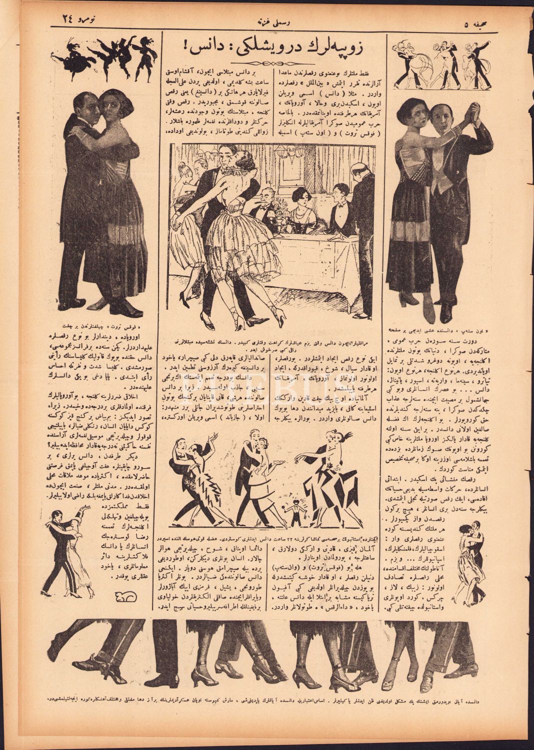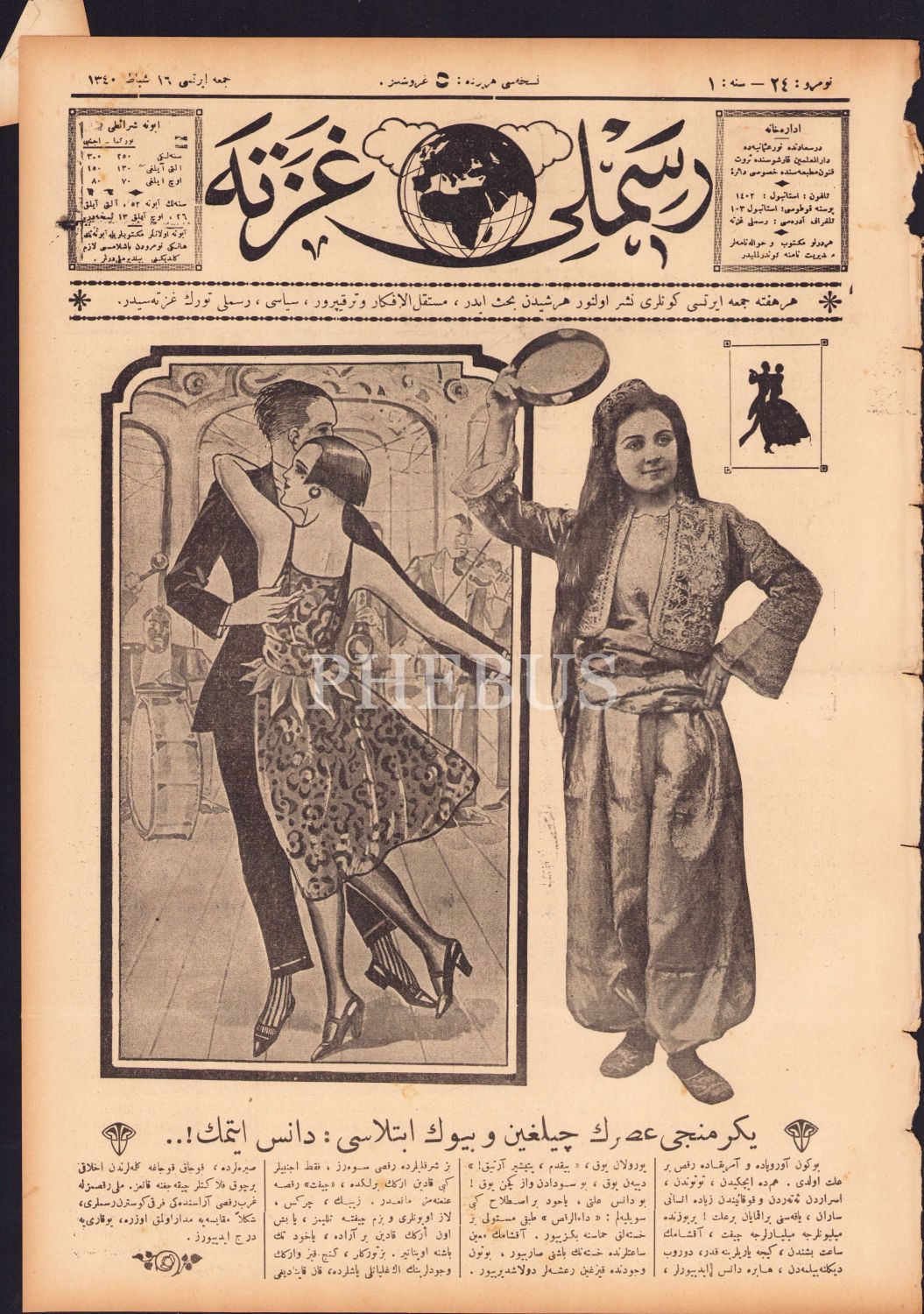 Osmanlıca Resimli Gazete - 16 Şubat 1340, Kapak: Yirminci Asrın Çılgın ve Büyük İbtilası: Dans Etmek!...", ciltten çıkma, 8 sayfa, 28x40 cm