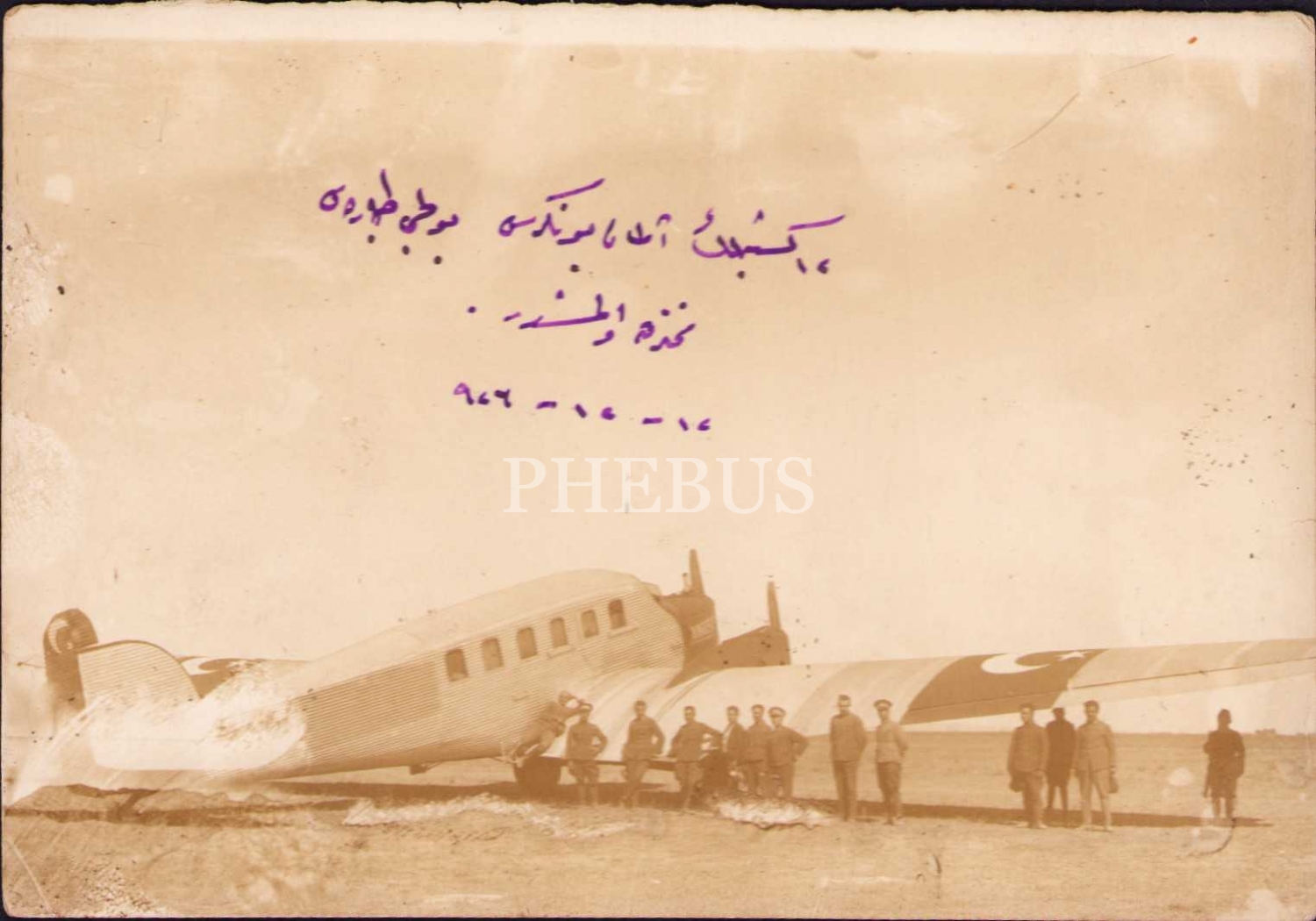 1926 tarihli 12 kişilik Junkers yolcu tayyaresi ve mürettebatı, Ay-yıldız bayraklı, 13x9 cm