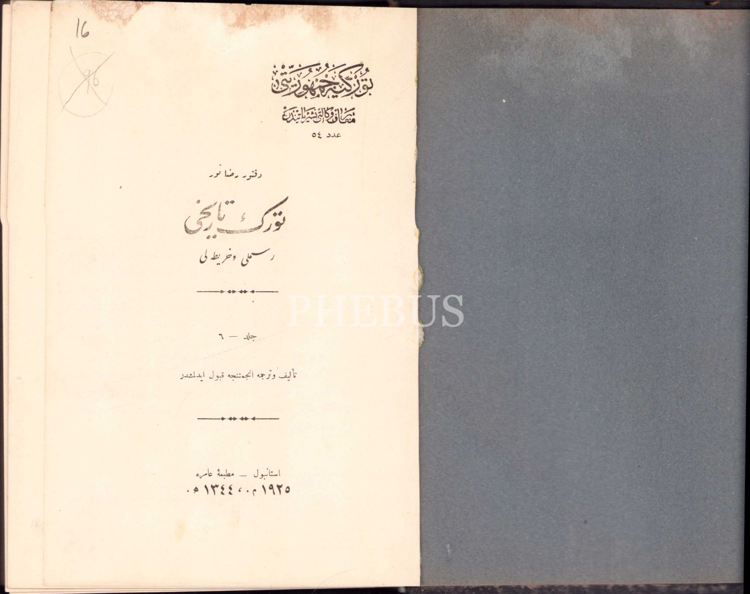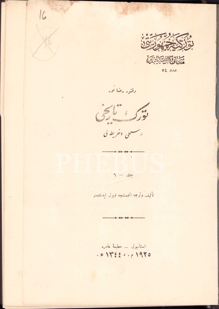 Osmanlıca Türk Tarihi [Resimli - Haritalı] - 6. Cilt, Doktor Rıza Nur, Matbaa-i Amire, İstanbul, 1925, 411 sayfa, 16x22 cm