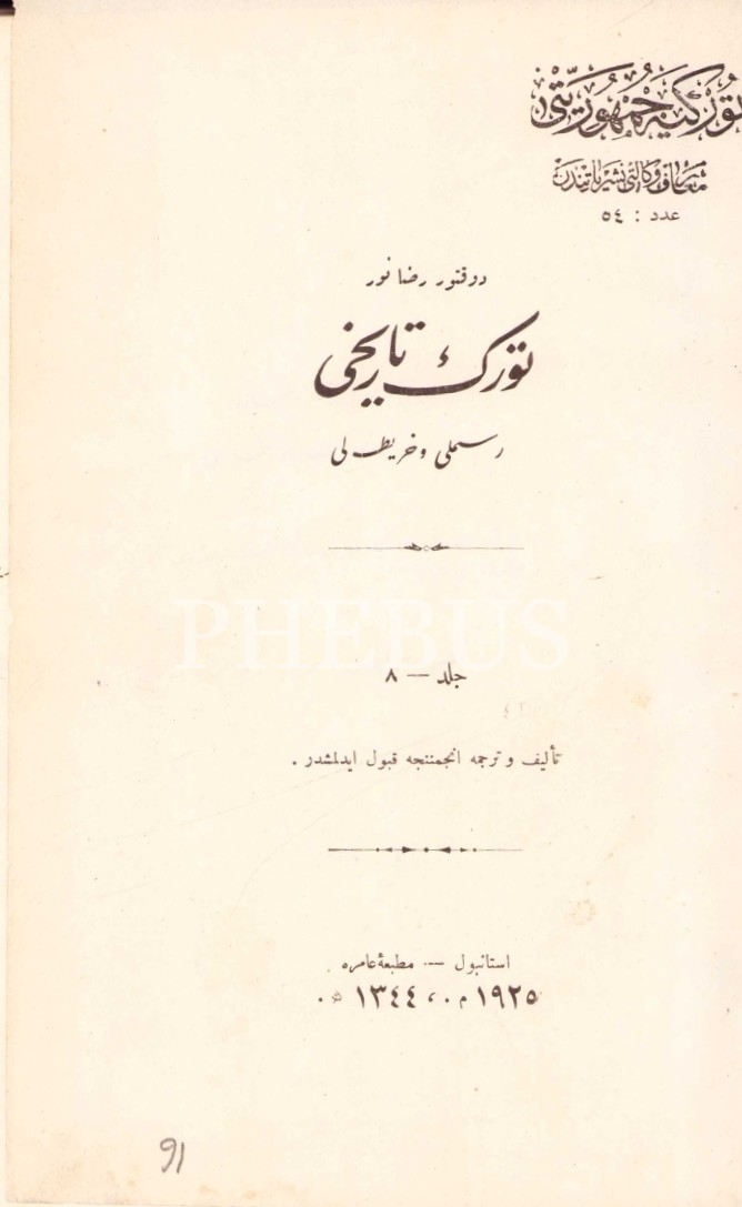 Osmanlıca Türk Tarihi [Resimli - Haritalı] - 8. Cilt, Doktor Rıza Nur, Matbaa-i Amire, İstanbul, 1925, 391 sayfa, 16x22 cm