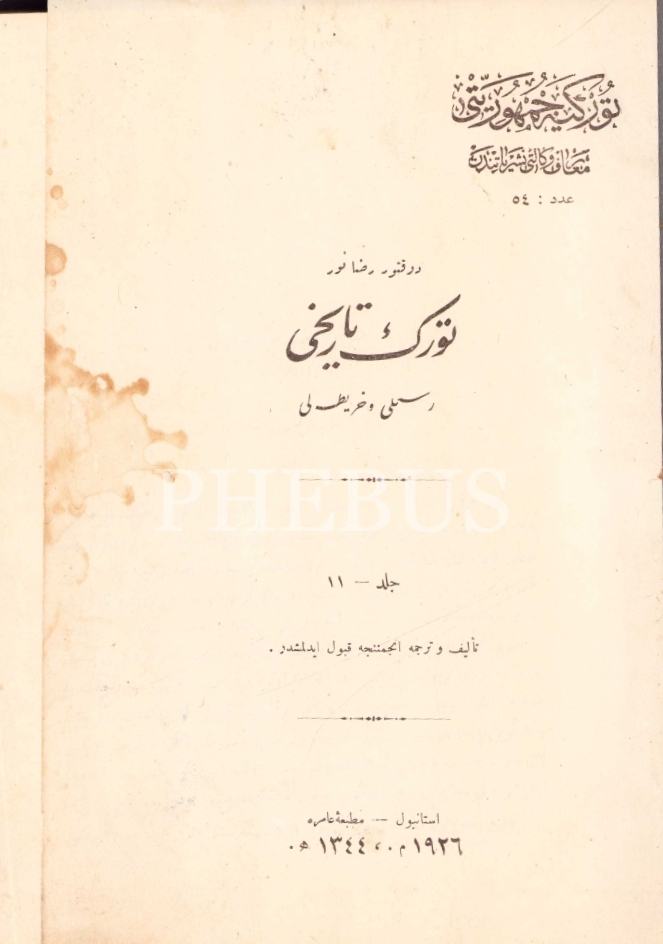 Osmanlıca Türk Tarihi [Resimli - Haritalı] - 11. Cilt, Doktor Rıza Nur, Matbaa-i Amire, İstanbul, 1926, 410 sayfa, 16x22 cm