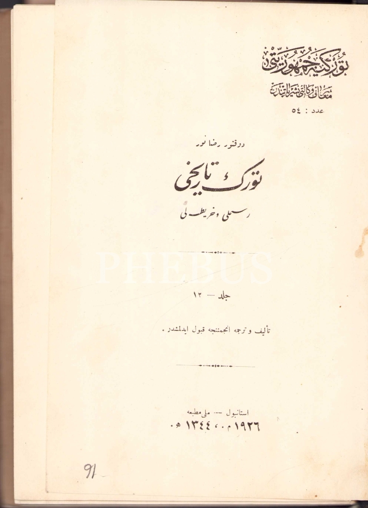 Osmanlıca Türk Tarihi [Resimli - Haritalı] - 12. Cilt, Doktor Rıza Nur, Matbaa-i Amire, İstanbul, 1926, 399 sayfa, 16x22 cm
