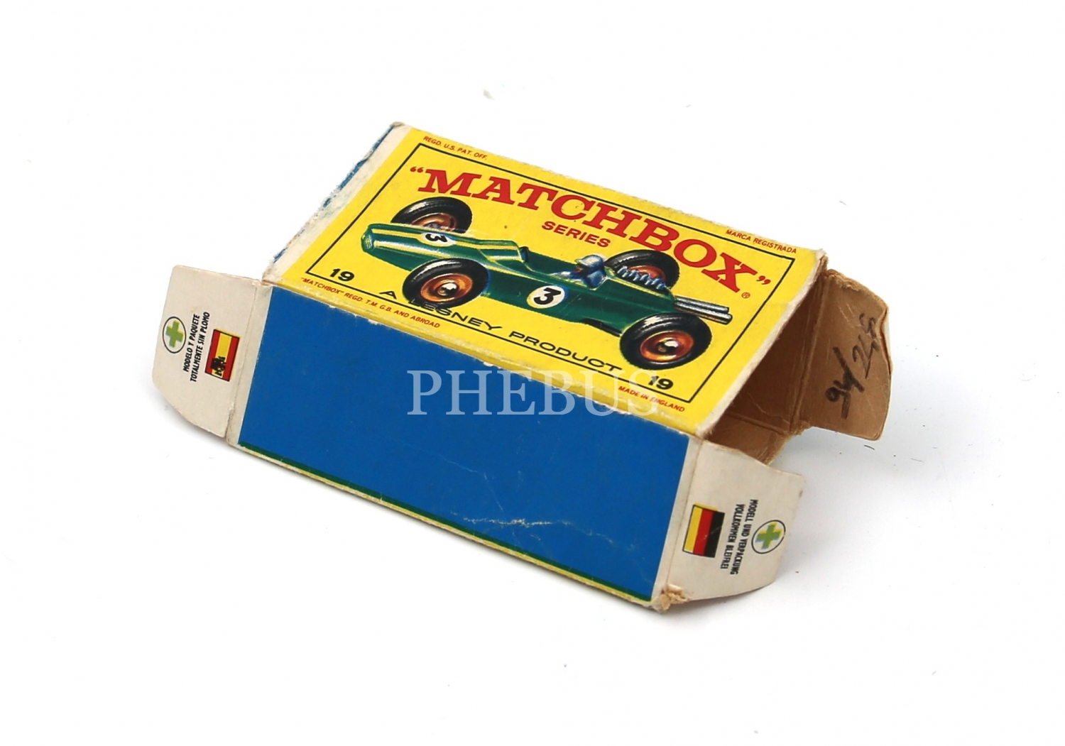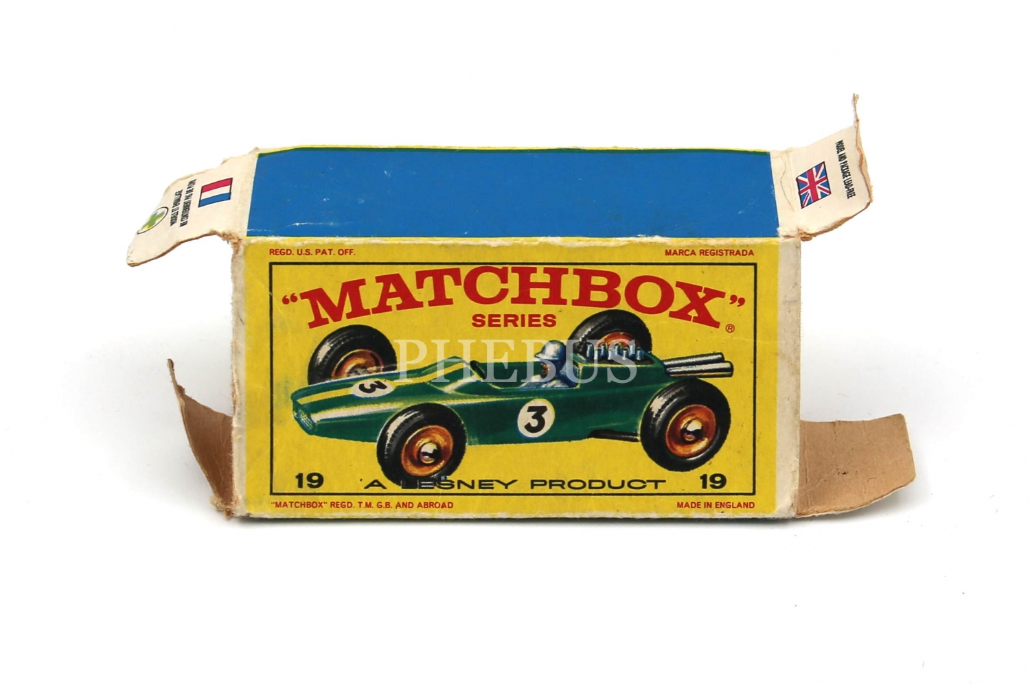 Matchbox 19 A Lesney Product karton kutu, boş, 7x4x2 cm, haliyle