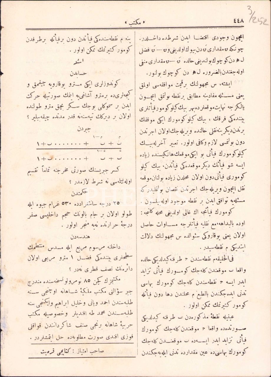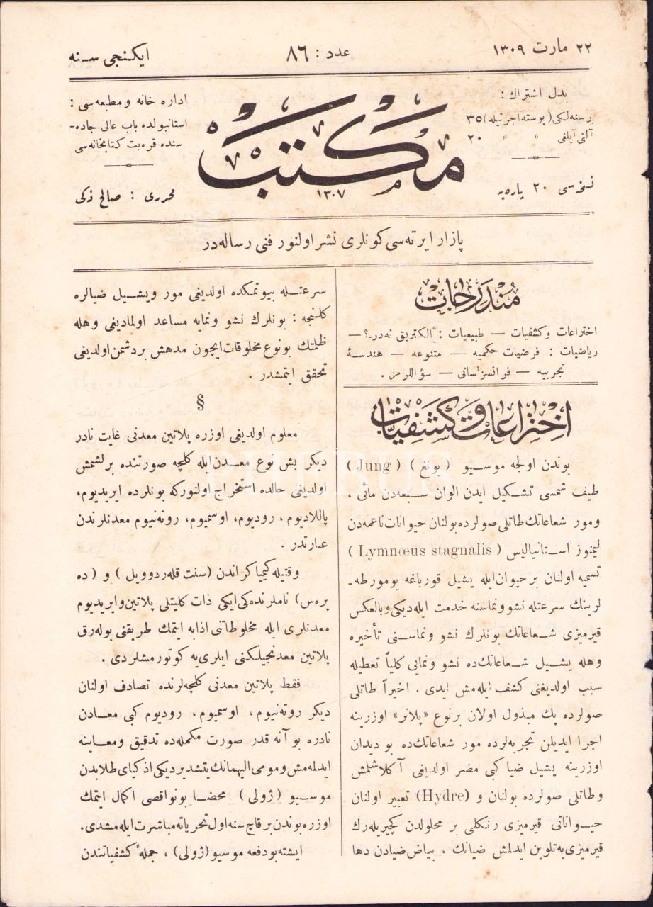 Osmanlıca Mektep Risalesi, 22 Mart 1309, Muharriri Salih Zeki, 12 sayfa, 17x23 cm