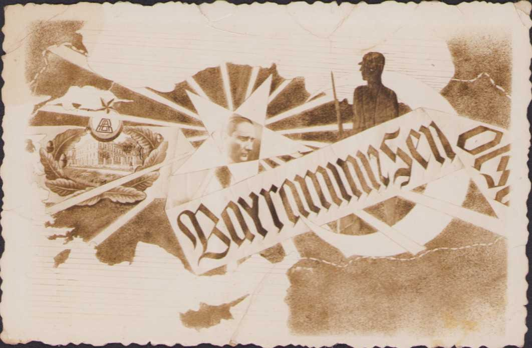 Atatürk, ay yıldız ve Türkiye temalı fotoğraf, bayram tebrik mesajlı, 1935 tarihli,9x6cm