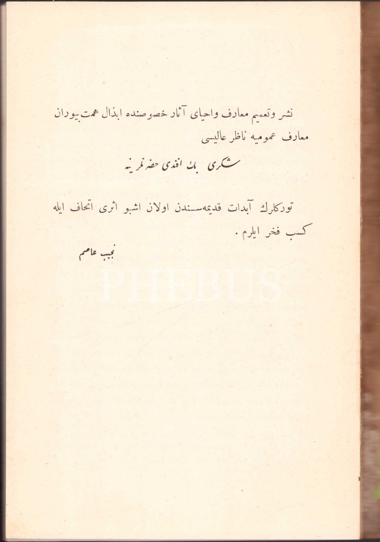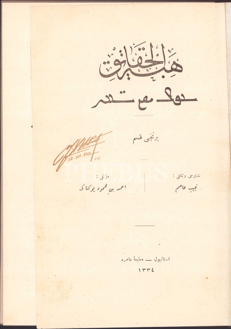 Osmanlıca Hitabet Ül-Hakaik, Ahmed b. Mahmud Yükneki, Çeviren: Necib Asım [Yazıksız], Matbaa-i Amire, İstanbul 1334, sayfa numaraları karışmış, 100 sayfa, 15x21 cm