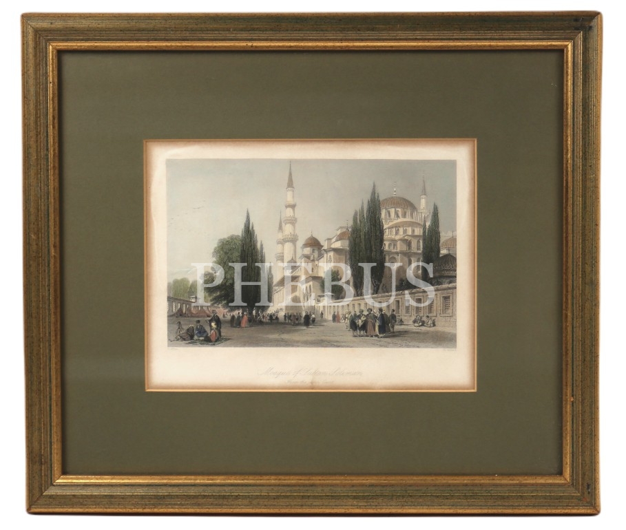 Süleymaniye Camii gravür, elle renklendirme, 37x32 cm