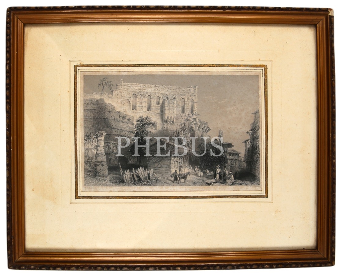 Tekfur Sarayı gravür, çerçevenin arkasında çerçeveci Lefteris Bert - Tünel etiketi mevcut, 34x27 cm