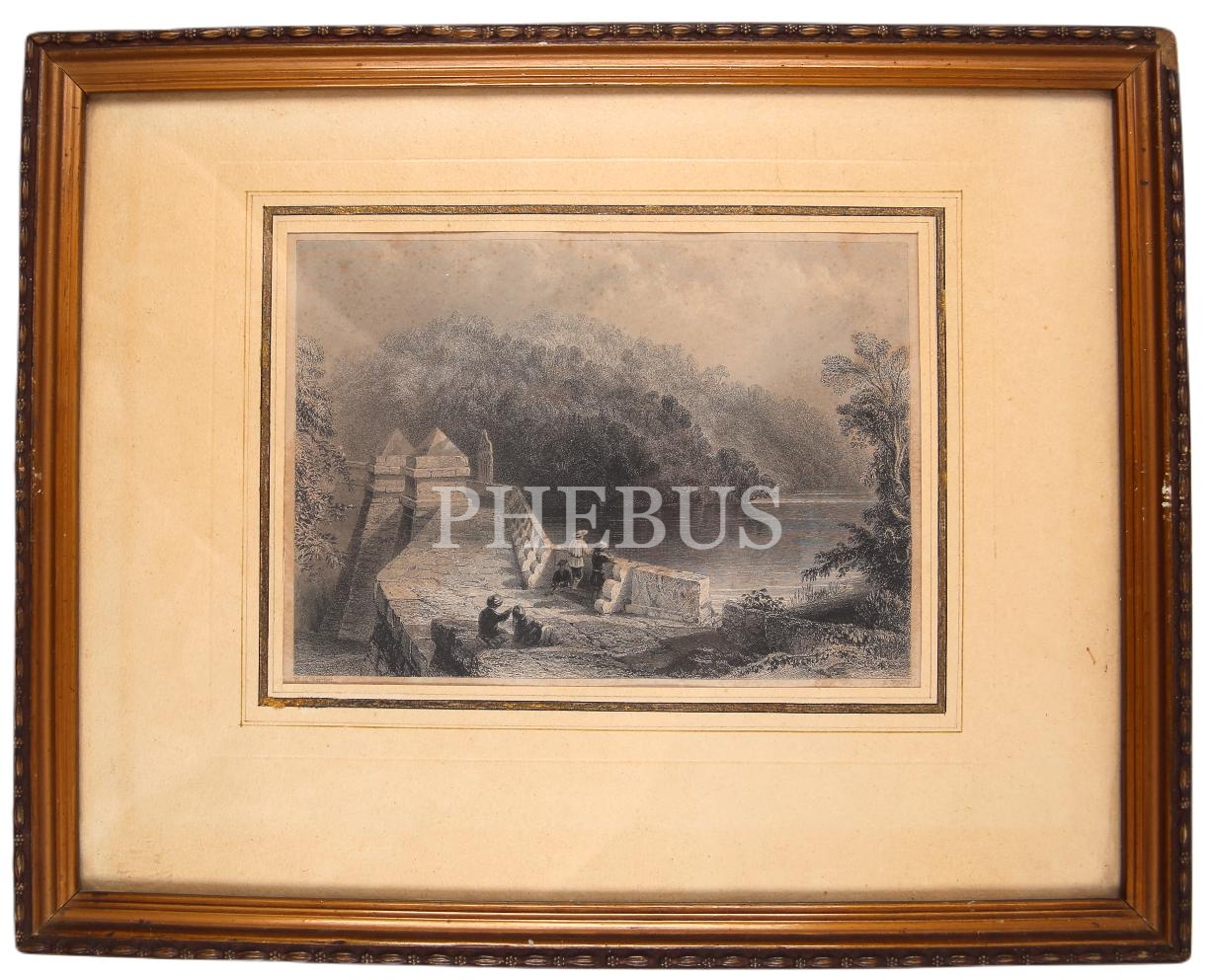 Osmanlı dönemi baraj gravür, çerçevenin arkasında çerçeveci Lefteris Bert - Tünel etiketi mevcut, 34x27 cm