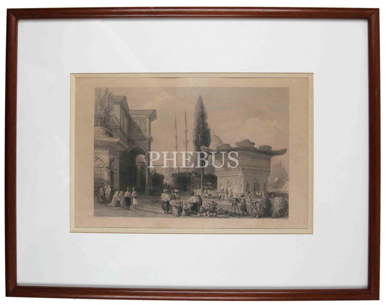 Constantinople Tophane Çeşmesi gravür, W. H. Bartlett & J. Cousen, 36x28 cm